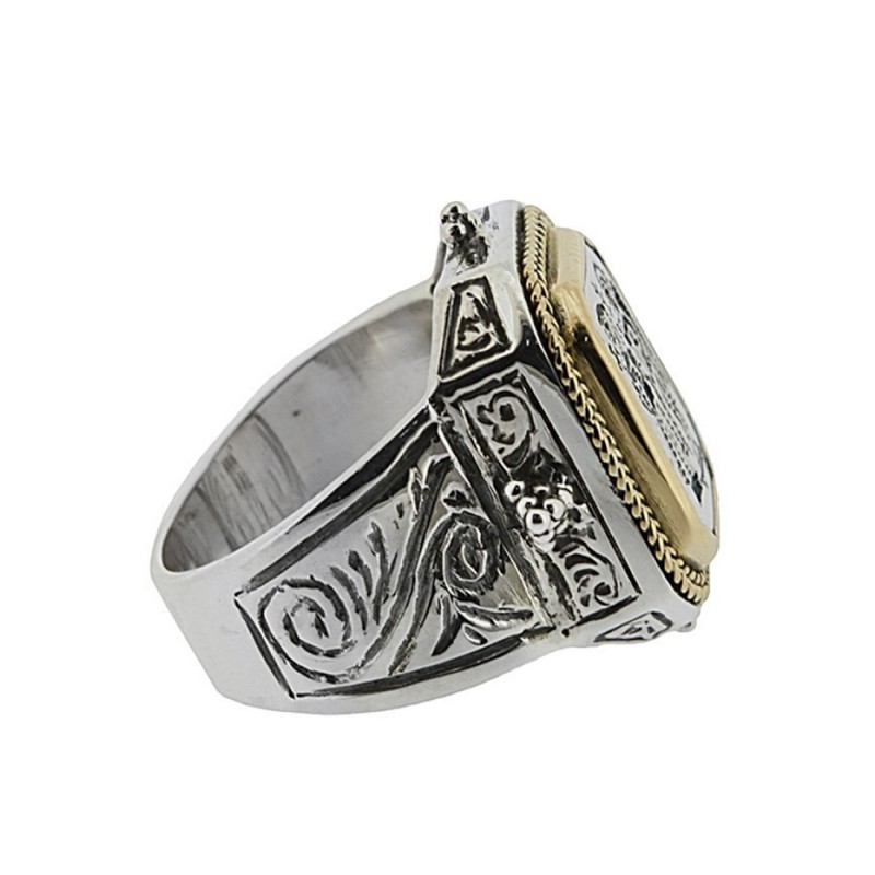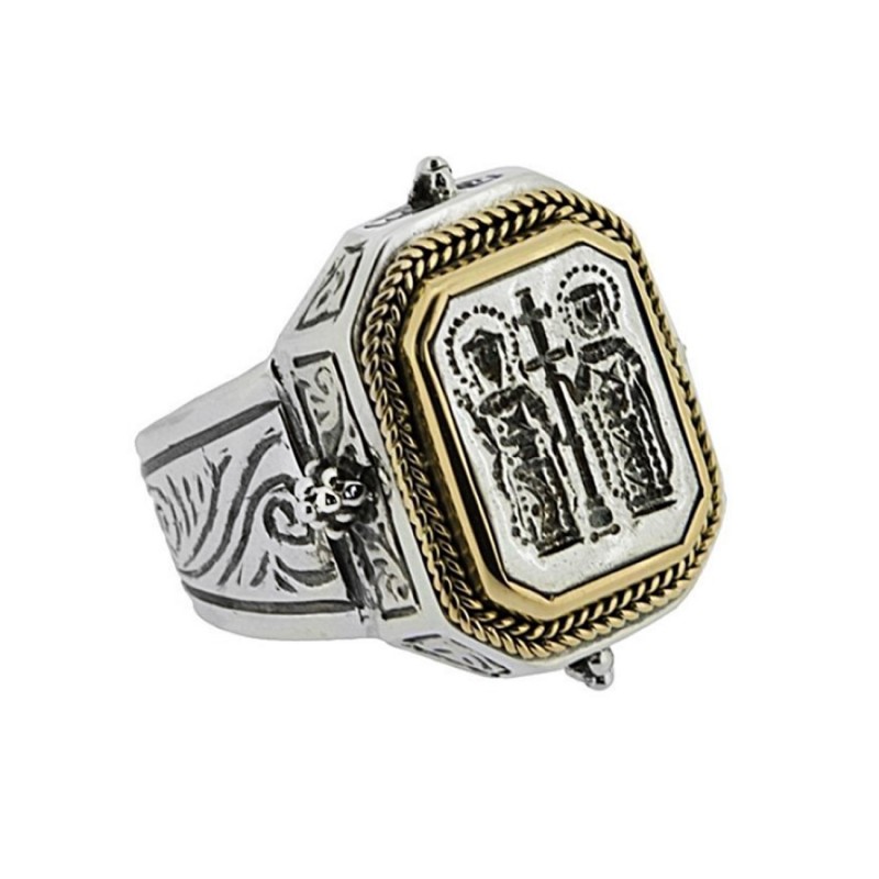 A unique signet ring in 22K solid gold and sterling silver depicting St Constantine and Helen.
